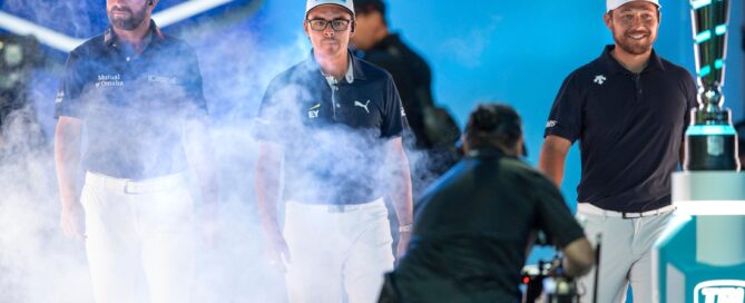 Xander Schauffele, Rickie Fowler and Cameron Young of New York [...]