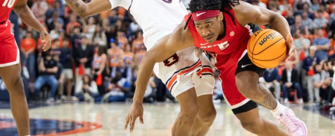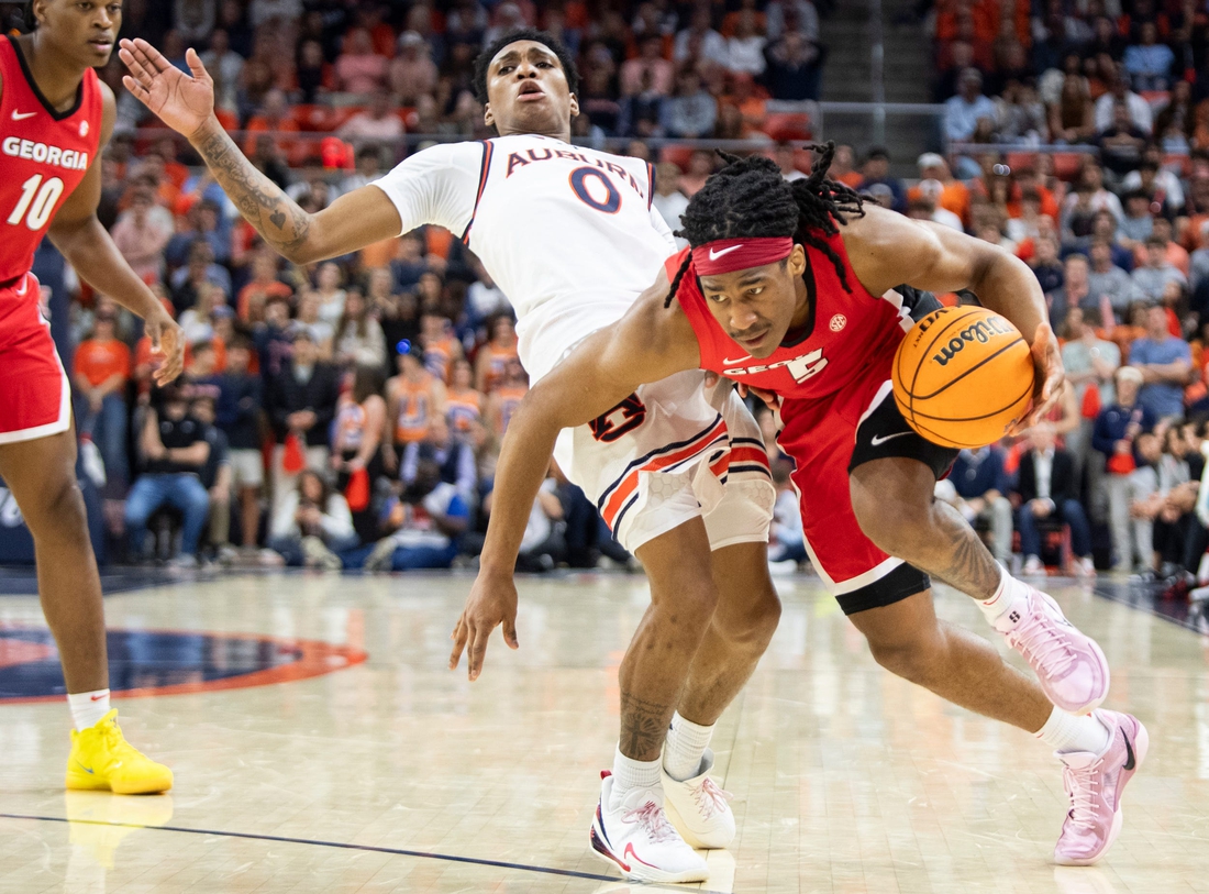 Georgia Bulldogs guard Silas Demary Jr. (5) drives the ball [...]